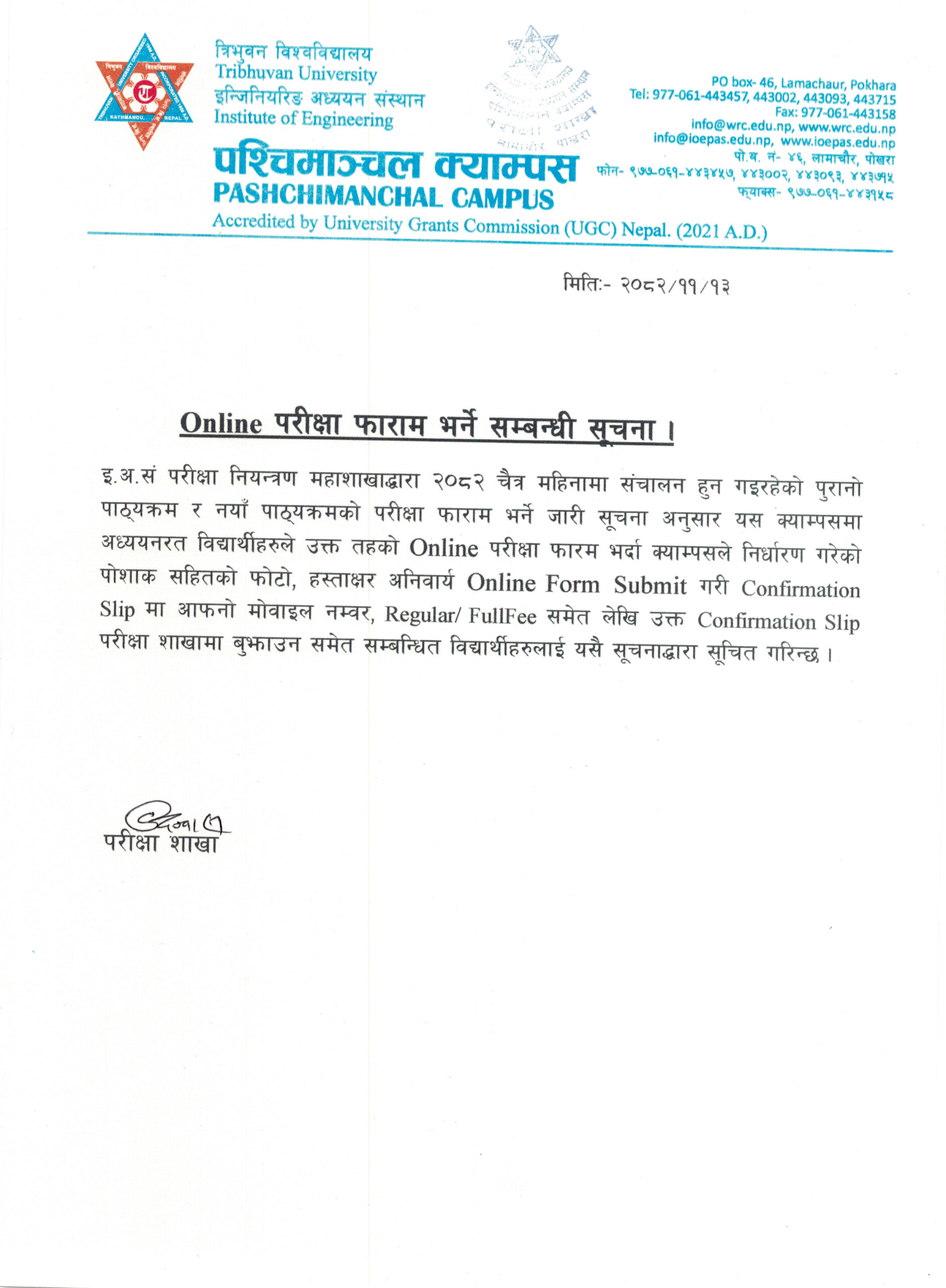 Online परीक्षा फाराम भर्ने सम्बन्धी सूचना